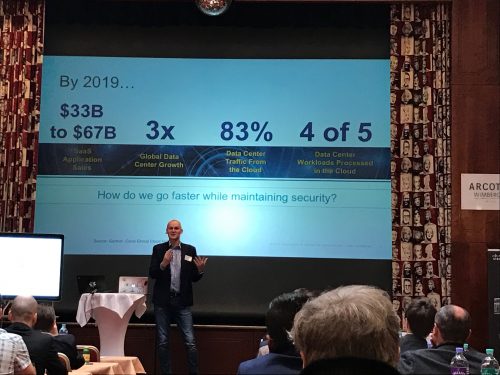 vor allem auch Herausforderungen für heimische IT Unternehmen. Laut einer Studie werden bis zum Jahr 2019 83% des Data Center Traffics aus der Cloud kommen. Die Anforderungen an die Rechenzentren auf die gesamte IT Infrastruktur transformieren sich.  Applikationen werden in Zukunft anders betrieben als noch bisher. Container und Microsegmentierung sind richtungsweisend für IT Abteilungen.