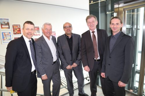 4: v.l.n.r.: Christian Fugina, Cisco; GF Norbert Pleyer FM-Burgenland; Richard Dvorak Amt der Burgenländischen Landesregierung; Vorstandsdirektor Dr. Alois Ecker Energie Burgenland AG; Christian Dick, Bit Studio