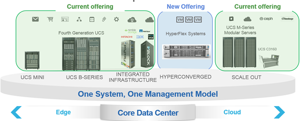 Op ons partnerevenement in San Diego hebben we deze week HyperFlex gelanceerd, een flexibele, zogenaamde hyperconverged datacenteroplossing, gebaseerd op onze succesrijke UCS-portfolio. Met andere woorden: één kant-en-klaar product dat zowel rekenkracht, netwerkconnectie, opslag en virtualisering biedt. Hiermee vullen we de laatste overgebleven leemte in ons aanbod en maken we onze “compute”-visie en -strategie nog duidelijker: één werkwijze en één beheersysteem voor alle datacentersystemen.