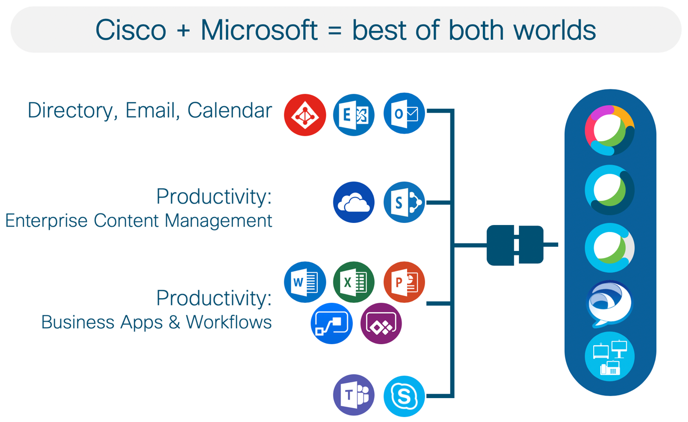 Cisco e Microsoft, reconhecendo o mix de soluções de colaboração presentes em cada escritório, da maioria das organizaçoes, anunciaram uma parceria estratégica para simplificar a experiência do usuário.  Este anuncio transformou para sempre o mercado da Colaboraçao.