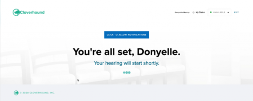 Hoje, estamos introduzindo a solução Connects do parceiro Cloverhound para tornar o processo de check-in virtual e docket perfeito e seguro. Usando sua solução de Webex já existente, os tribunais podem facilitar a adesão remotamente a audiências, como reclamantes, advogados e testemunhas. Os participantes digitam o número da audiência e fazem o check-in virtualmente e, em seguida, são colocados em uma sala de espera. As provas podem ser enviadas, e advogados e seus clientes podem ter conversas privadas.