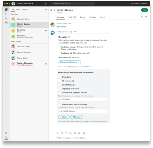 Assine os tweets de seus seguidores com o clique de um botão e receba atualizações em um espaço Webex