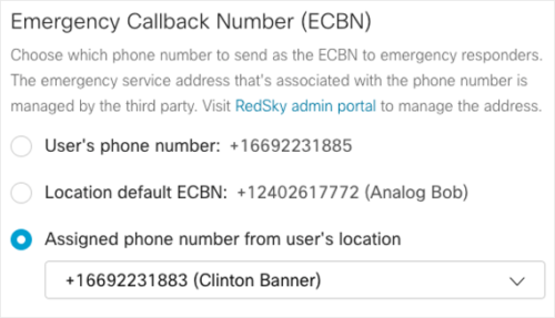 Chamada Webex: Atribuição de número de retorno de chamada de emergência: