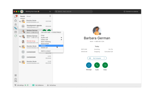 Configure o histórico de chamadas: Exclua uma ou mais chamadas clicando com o botão direito no menu de histórico de chamadas. Depois de retornar uma chamada perdida, você pode excluí-la instantaneamente. Também ajudamos a reduzir a confusão, aplicando um limite para que apenas o seu histórico de chamadas mostre as últimas 200 chamadas durante os últimos 30 dias.
