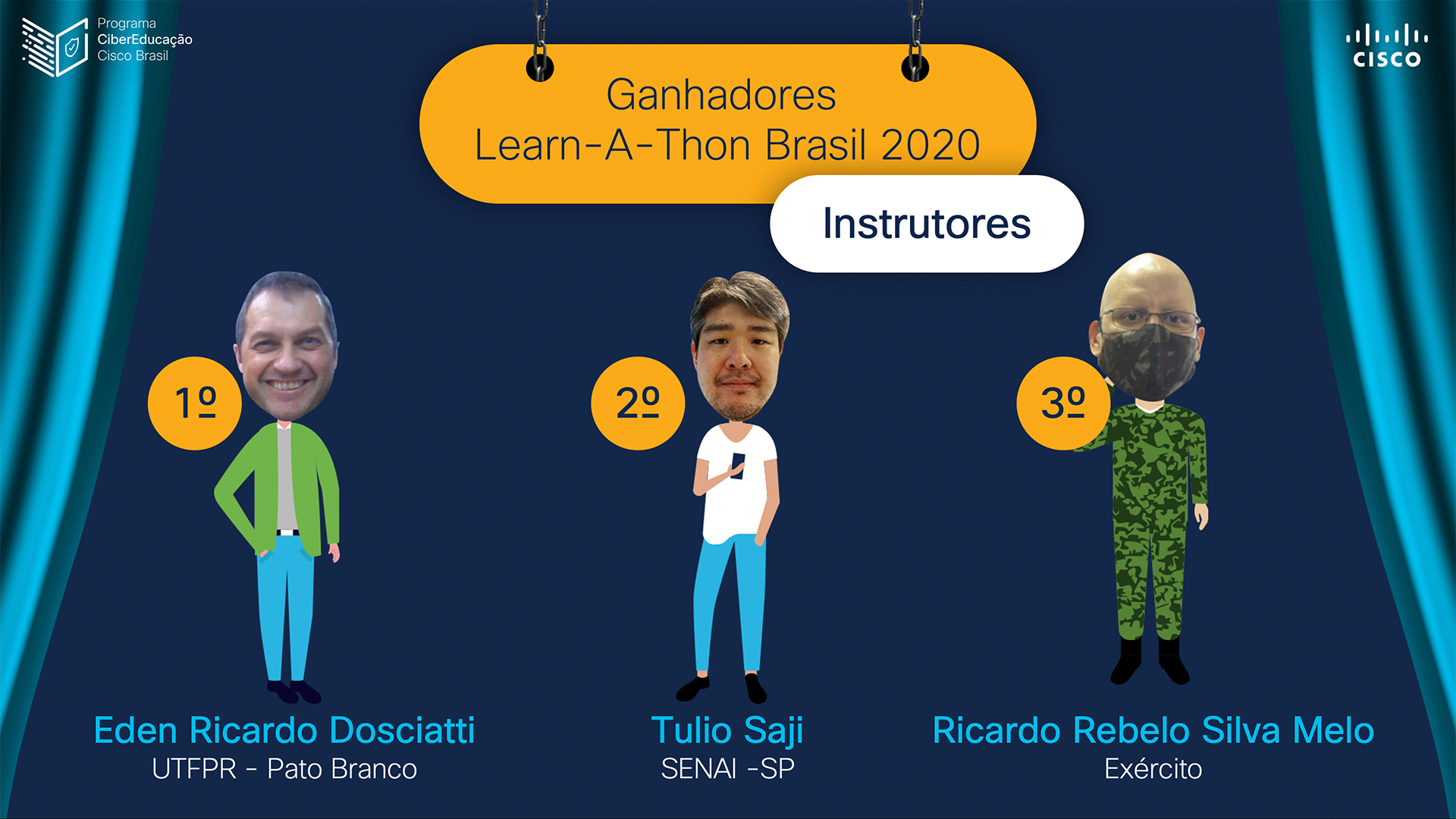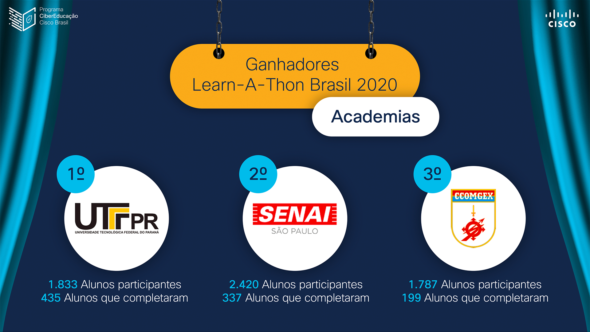 SENAI Nacional, o Centro Paula Souza, a Escola de Comunicações do Exército Brasileiro e o SENAC de Minas Gerais. Além destes, há os parceiros da maratona de aprendizagem Learn-A-Thon 2020 (Academias Cisco Networking Academy e instrutores responsáveis por captar alunos), os parceiros educacionais e parceiros empregadores.