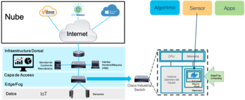 Para muitas empresas de manufatura de médio porte, os custos associados à aquisição de soluções para análise e processamento de dados costumam ser altos e, desse modo, essas empresas não podem comprá-los, razão pela qual a busca por alternativas mais econômicas e flexíveis motivou o desenvolvimento de técnicas como Edge Computing, que permite que o processamento e a análise de dados thin (não de grande volume) sejam realizados usando os recursos de computação da mesma infraestrutura de rede. Devido a isso, novas gerações de equipamentos de comunicação tiveram que ser desenvolvidas em ambientes industriais, em que o equipamento tem um hipervisor integrado, com uma máquina virtual e um sistema operacional rápido, como o Linux. Com isso, foi possível compilar aplicativos em contêineres docker, que puderam ser instalados na pequena máquina virtual, na memória desses computadores, para executar desde algoritmos e aplicativos até softwares especializados para detecção de ameaças cibernéticas (Cyber Vision).