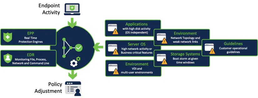 Visibilidade limitada: “Você não pode se proteger contra aquilo que não pode ver”. Uma vez que está dentro, está dentro. Os administradores têm visibilidade limitada de um arquivo ou aplicação quando entram em um dispositivo, pois não os monitoram continuamente. Hoje em dia, muitas ameaças avançadas possuem capacidades que são acionadas após um certo tempo, tornando-as difíceis para as soluções tradicionais detectar.