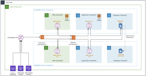 A AWS recomenda uma arquitetura de três camadas para aplicativos da web. Esses níveis são separados para executar várias funções independentemente. A arquitetura multicamada para aplicativos da web possui uma camada de apresentação (nível da web), uma camada de aplicativo (nível de aplicativo) e uma camada de banco de dados (nível de banco de dados). Existe a flexibilidade de fazer alterações em cada nível, independentemente de outro nível. O aplicativo requer escalabilidade e disponibilidade; A arquitetura de três camadas torna independente a escalabilidade e a disponibilidade de cada camada.