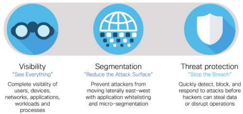 Visibilidade: Cisco Tetration, Cisco Stealthwatch Cloud, Cisco AMP para Endpoint, Cisco Threat Response e AWS VPC Flow Logs.