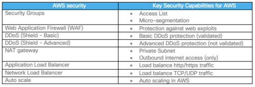 Além do controle de segurança da Cisco acima, a Cisco recomenda o uso dos seguintes componentes de segurança nativos da AWS para proteger cargas de trabalho e aplicativos.