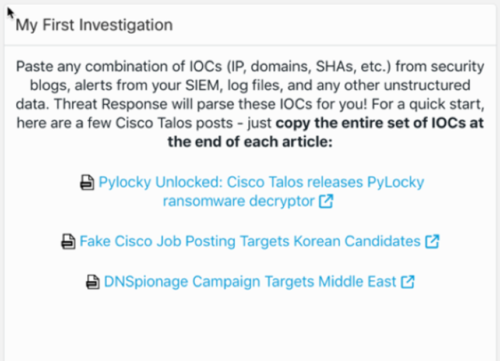 Mas aqui estão algumas notícias boas: uma das ferramentas mais valiosas disponíveis na busca às ameaças é gratuita. Assim como dizia a música de Golden Oldie (ou o clássico pop de Janet/Luther) diz, as melhores coisas da vida são gratuitas. Para clientes com Cisco Next-Generation Firewalls, Intrusion Prevention (IPS), AMP for Endpoints, Cisco Umbrella, Email Security, e/ou Threat Grid, o Cisco Threat Response ajuda a detectar, investigar e tomar medidas corretivas contra ameaças digitais, sem nenhum custo adicional.