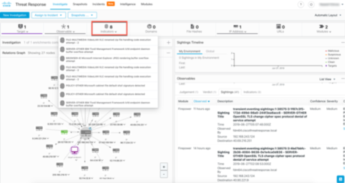 o Cisco Threat Response fornece detalhes sobre comportamentos, arquivos e atividades suspeitos. Em seguida, com um segundo clique, pode ser fácil e rápido de ver, e, em muitos casos, corrigir  a causa do problema.