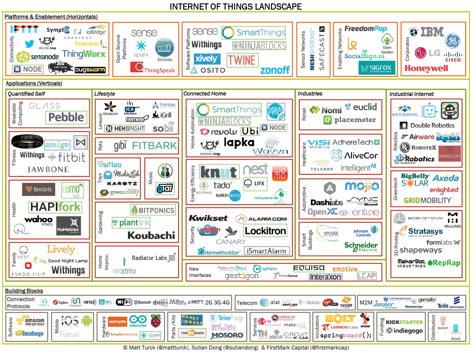 Pour répondre à ces questions, nous devons prendre du recul pour en comprendre quelques aspects importants.  Premièrement, l’Internet multidimensionnel se présente comme un convoi de fret ferroviaire, où chaque wagon apporte son lot de technologies et d’applications très spécifiques.  Pour prendre la mesure de l’activité de ce qui se déroule, il est important de commencer à regarder le paysage de l’IoE en termes de segments précis. Voici deux choses qui peuvent vous y aider :
