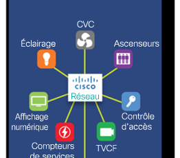 Dans un immeuble traditionnel, chacun des différents systèmes, chauffage et climatisation, éclairage, contrôle d’accès, TVCF, possède son propre réseau, habituellement exclusif ou de basse qualité. Ces systèmes ne communiquent pas entre eux et sont rarement conçus pour être raccordés à l’Internet; la sécurité est donc une énorme préoccupation.