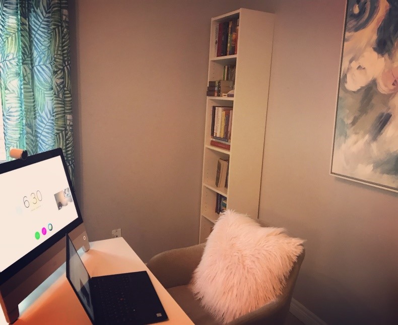 At home was a different story. I usually work out of my home office twice a week, saving almost 3 hours commute time and giving me more time with my family. Thanks to my newfound mastery of Webex Meetings and Teams, I was able to be just as connected at home as in the office. It was easy to join meetings through my laptop, but I missed having that dedicated video device. While chatting about this to a colleague one day, she mentioned that Cisco makes desktop video devices which double as a second monitor – the DX 80. Having one for my home office has been life changing. Like the set-up at the office, the DX80 prompts me when it is time to join a meeting and all I do is click the green button and voila! meeting started, in HD with crystal clear audio, no less.