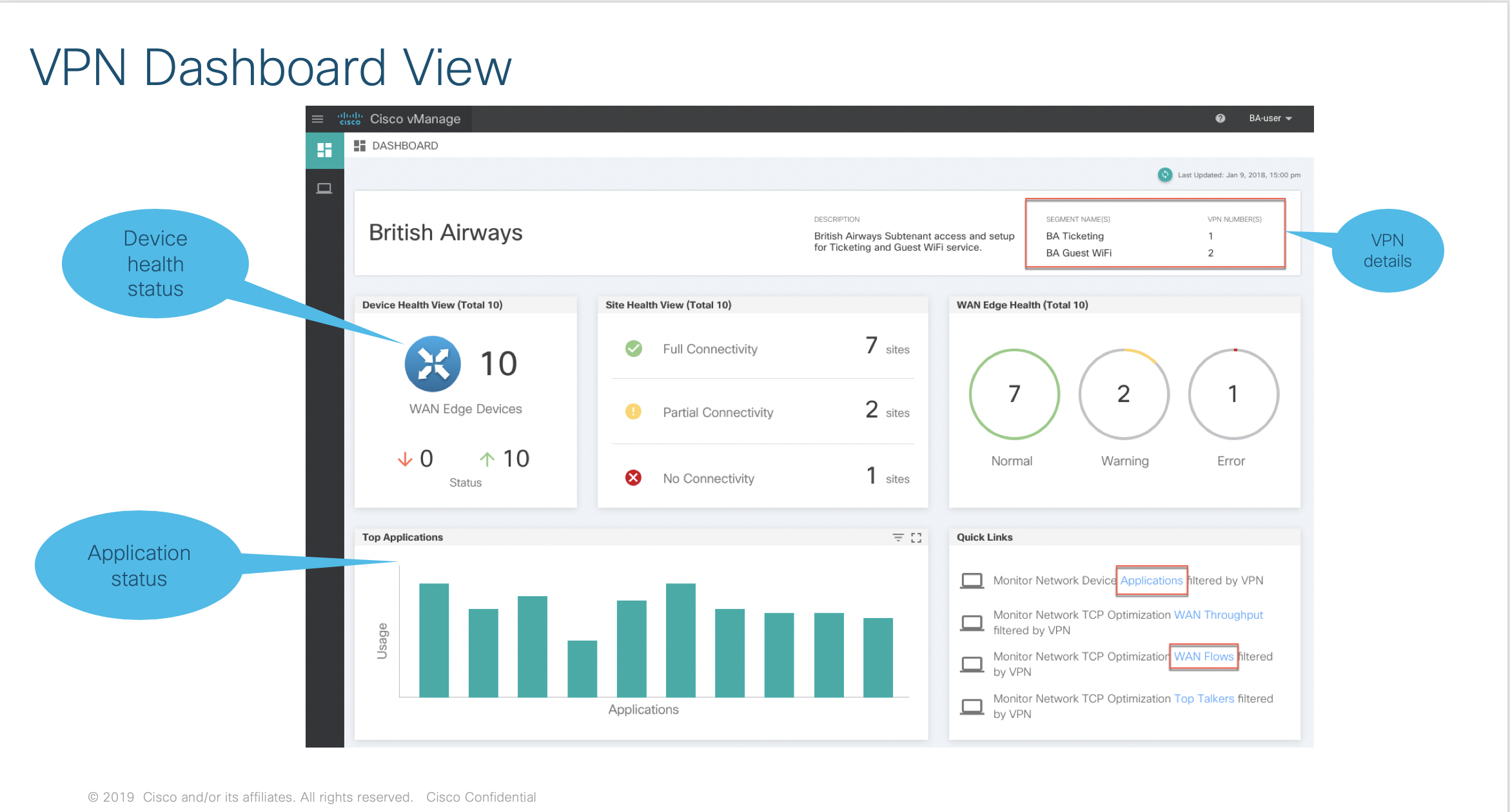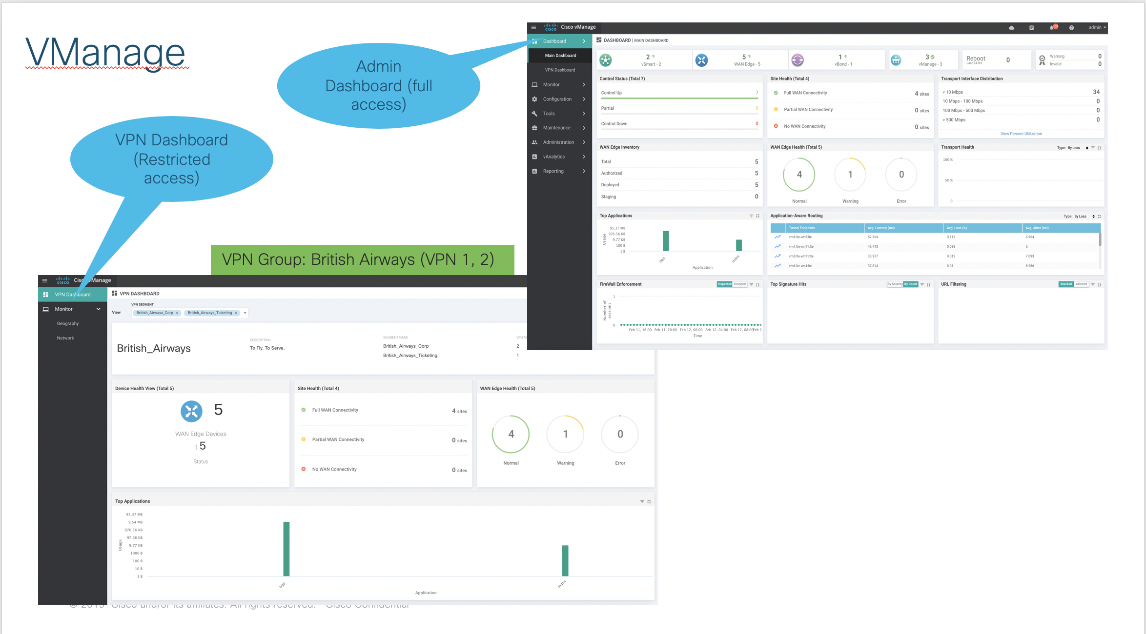 In den folgenden Beispielen wird gezeigt, wie die Micro-Tenancy von vManage umgesetzt wird – via dem fiktiven Kunden “British Airways” der mittels RBAC Steuerung in einzelne Bereiche unterteilt wurde. Der jeweilige Regionen Admin hat nur Zugriff auf seine lokale Umgebung.