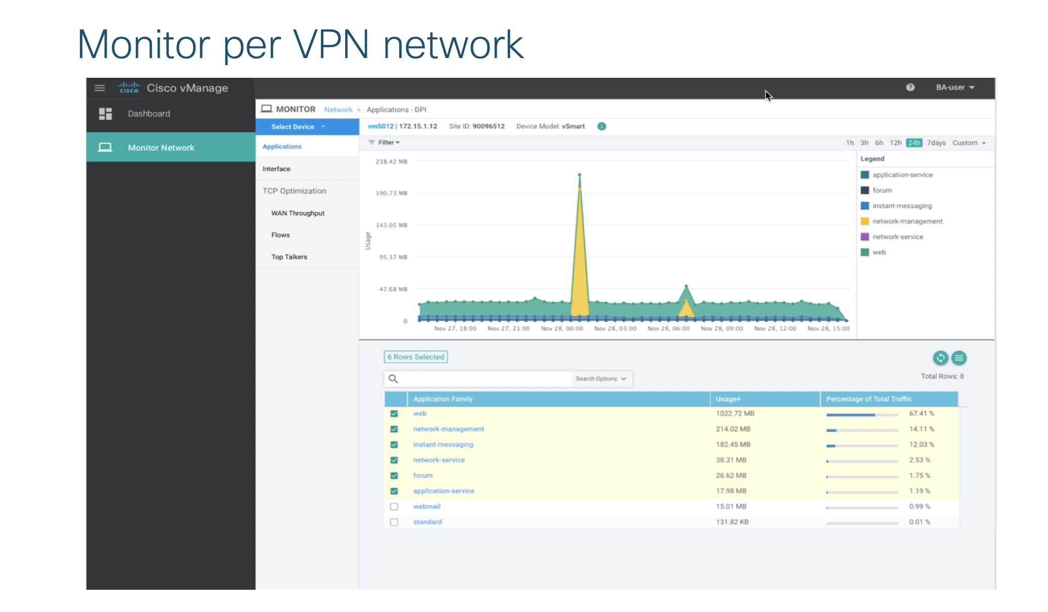 Die folgenden Folien zeigen weitere Aspekte der RBAC Steuerung in vManage. Der lokale Admin hat Zugriff auf diverse Parameter in seiner Umgebung, inkl. des Datenaufkommens auf “seinen” Leitungen.