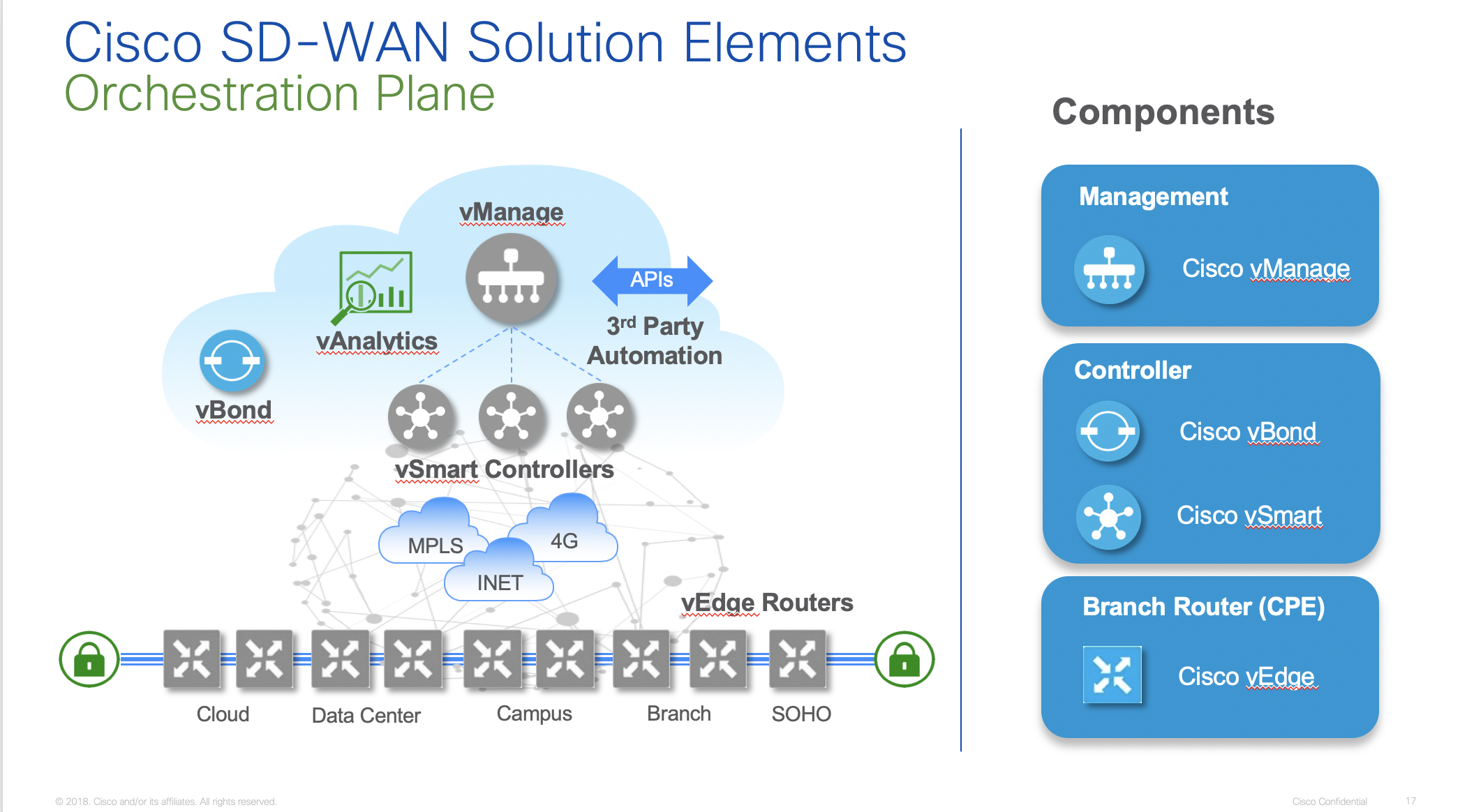 Eine Viptela SD-WAN Fabric basiert auf folgenden Bausteinen: