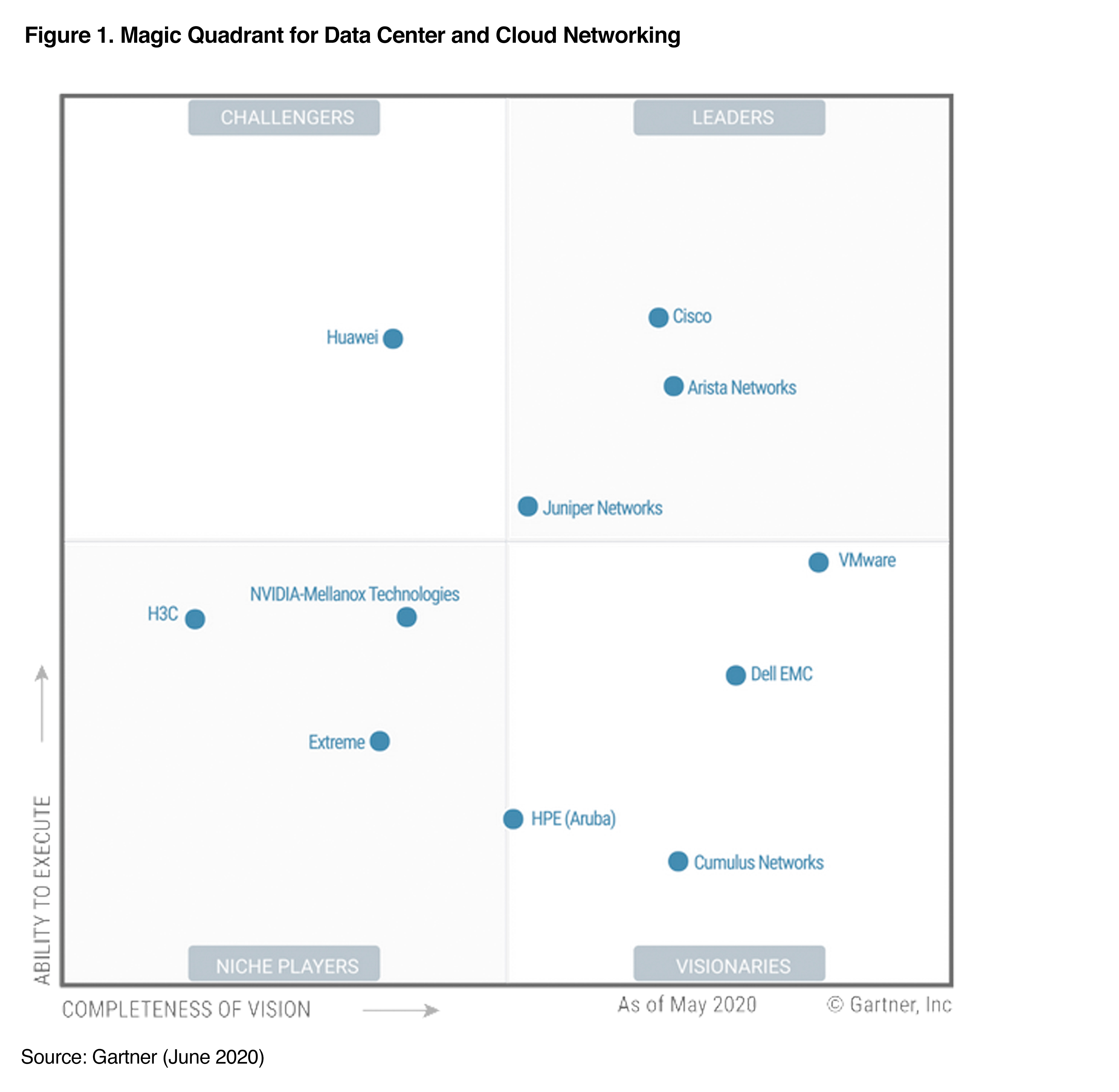 Gartner Magic Quadrant for Data Center and Cloud Networking 2020, Andrew Lerner, Evan Zeng, Jonathan Forest, 30 June 2020 was formerly named Magic Quadrant for Data Center Networking.