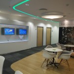 Wir haben den Eingangsbereich des Customer Briefing Centers mit einer Lounge moderner gestaltet, um eine einladende, helle und ruhige Atmosphäre anzubieten. Gleichzeitig inspirieren wir hier mit innovativen Technologien wie zum Beispiel der Cisco TelePresence MX800, dem Video- und Audioerlebnis der besonderen Art für Ihre Besprechungen und Räume jeglicher Grösse. Desweiteren sehen Sie mit dem Social Media Listening Center live was und wie gerade über Cisco in Deutschland und in der Welt geredet wird.