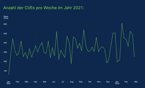 Auch haben wir 2021 vermehrt mehr Schwachstellen in Virtualisierungsumgebungen zu tun gehabt. So wurden deutlich mehr Schwachstellen in VMware ESXi gefunden als in früheren Jahren.