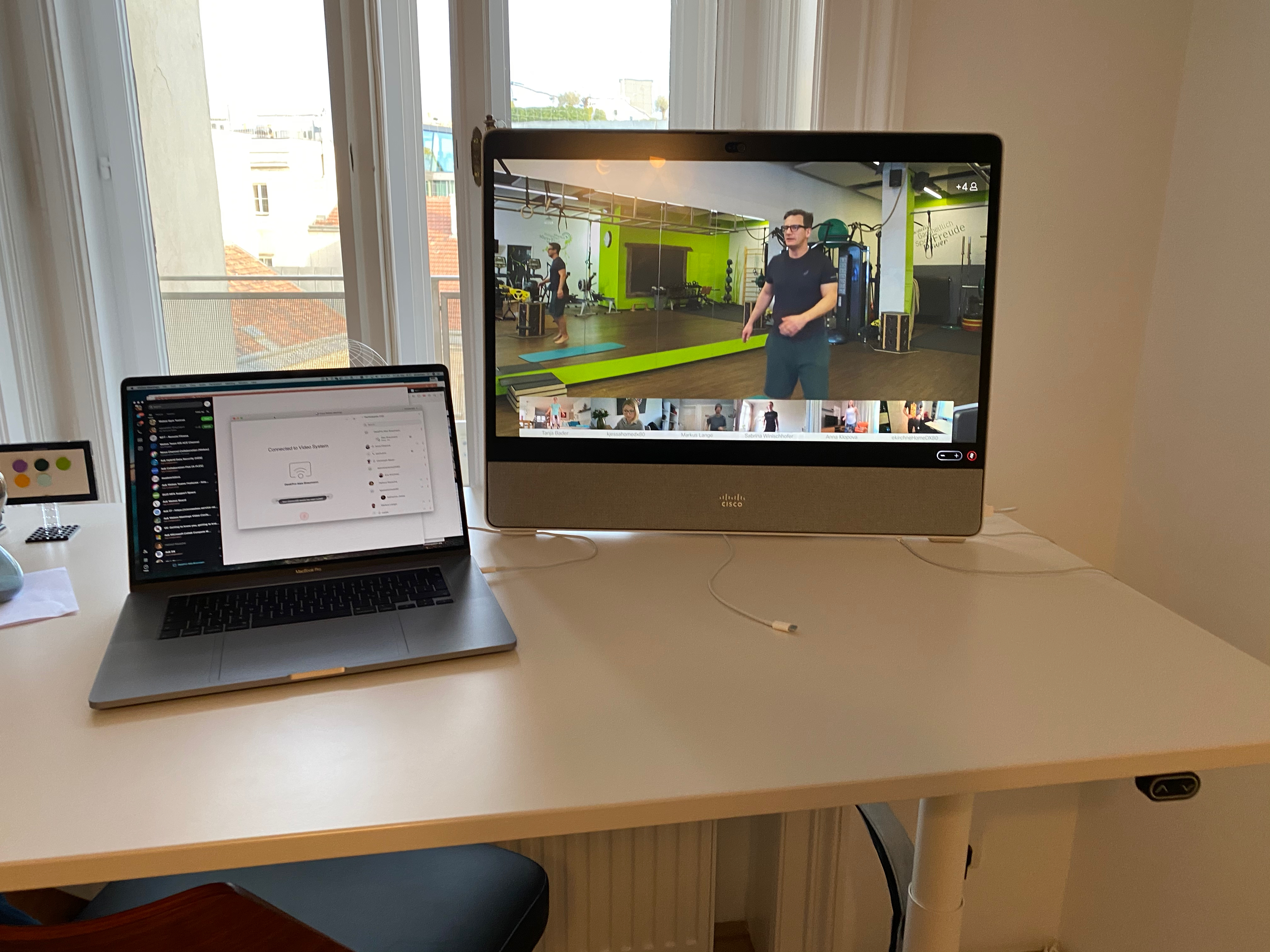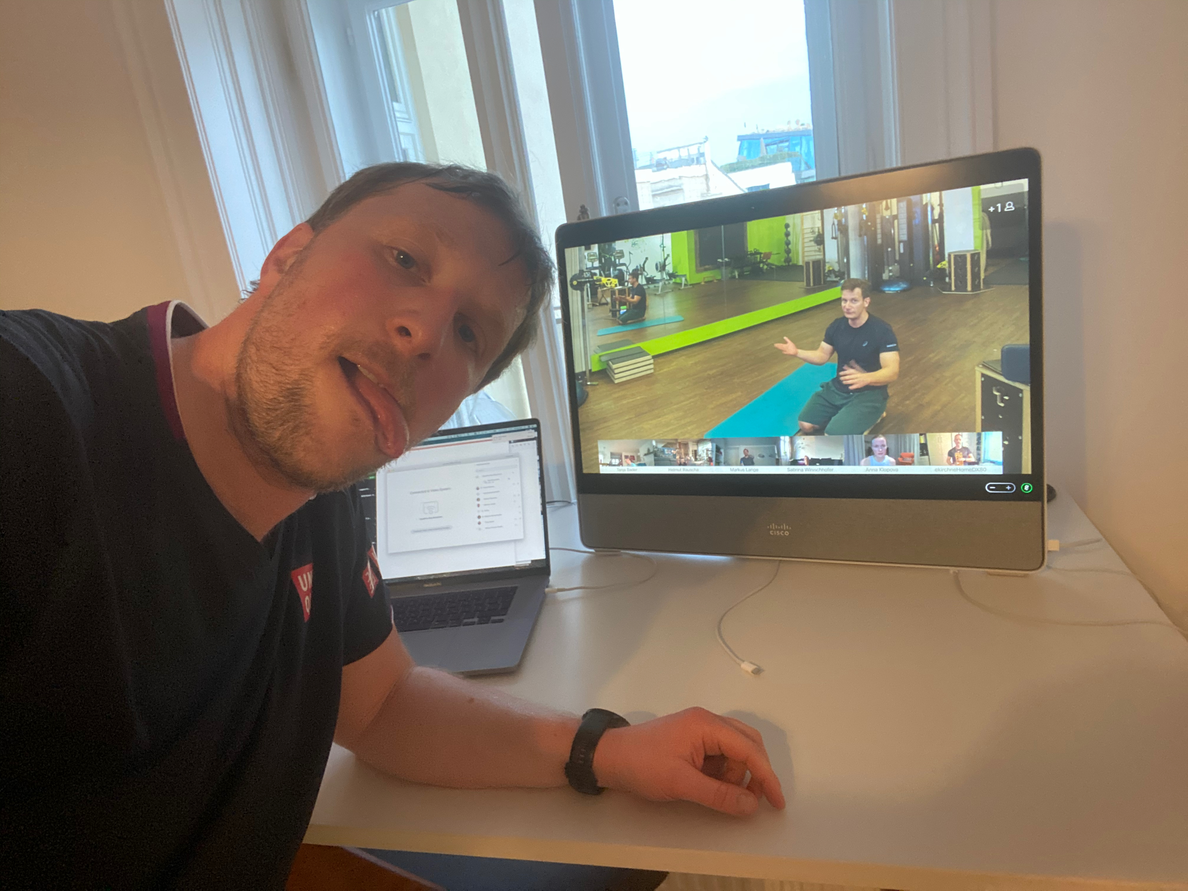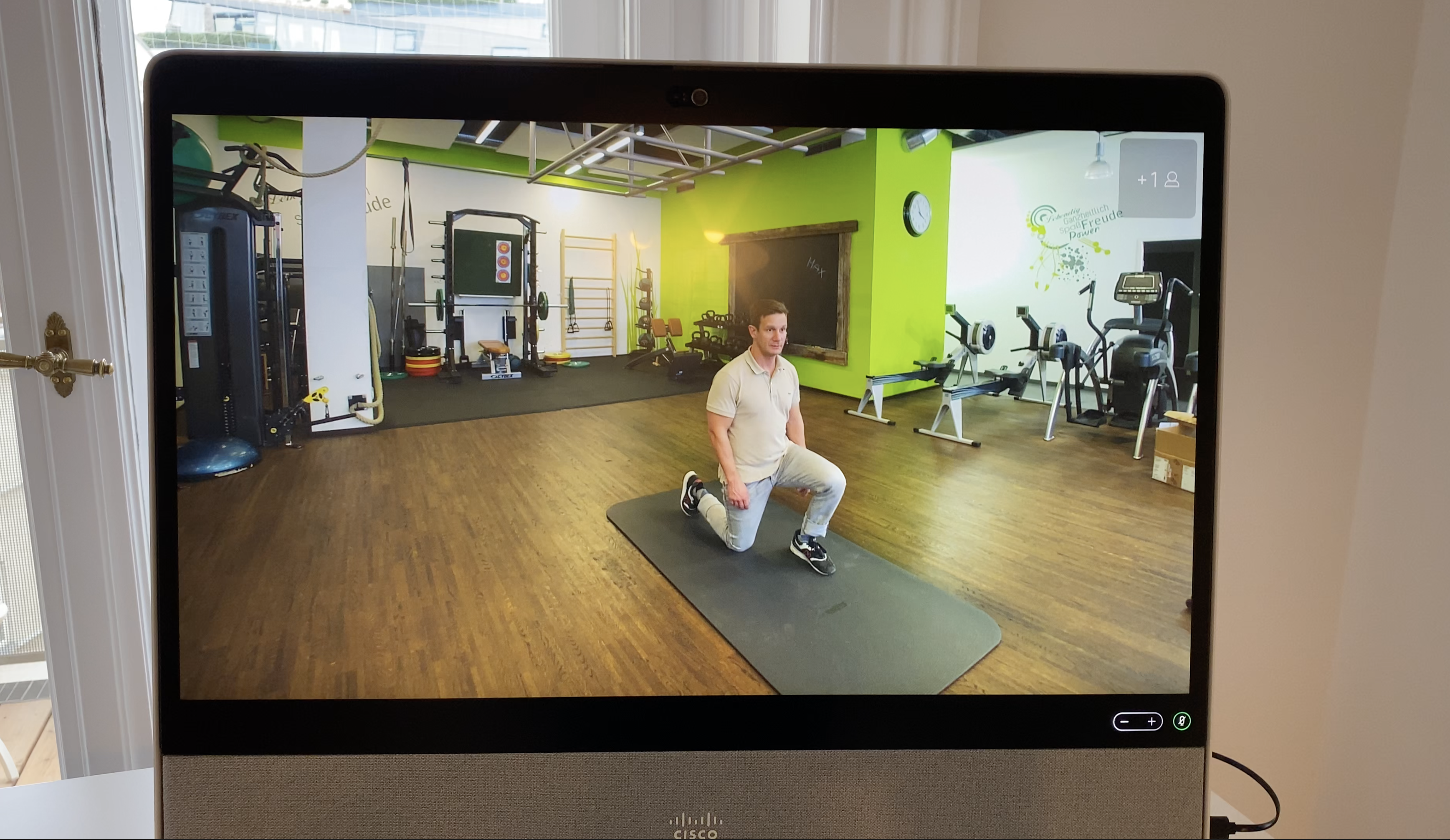 Am 16. März: spreche ich mit meinem Freund Christian Zauner, dem Geschäftsführer des Firstfloor Personal Training Studios. Er erzählt mir, dass er virtuelle Trainings schon seit geraumer Zeit im Auge gehabt hätte, eine Umsetzung bis jetzt aber immer an der passenden Technik gescheitert ist. So wurde die Idee „geboren“. Regelmäßiges, aber abwechslungsreiches Personal Training über die Collaboration Plattform Cisco Webex.