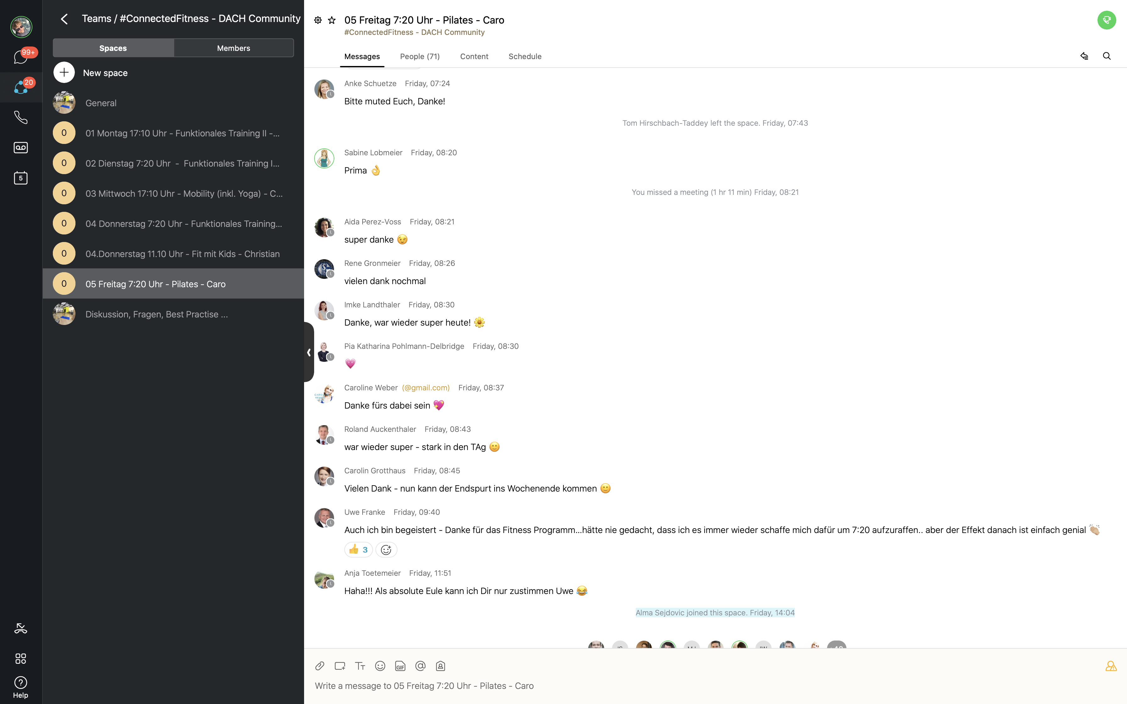 Hier die Freitag Pilates-Session mit Caro, 71 Teilnehmer.