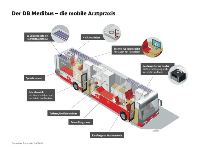 Dr. Christian Gravert, leitender Arzt der DB, meint anschließend: „Bei der medizinischen Versorgung im Medibus werden keine Kompromisse in der Qualität gemacht, denn das Fahrzeug ist technisch für Telemedizin und weitere Innovationen gut vorbereitet.“ Bei der Behandlung der Patienten ist es wichtig, dass die Übertragung von Bild- und Ton möglichst einwandfrei und synchron funktionieren. Zudem muss die Bedienung der Technik für den Arzt intuitiv sein und keinen Zusatzaufwand, sondern eine Entlastung beziehungsweise Unterstützung bieten. Wenn darüber hinaus mit Hilfe der geforderten elektronischen Patientenakte, die relevanten Gesundheitsdaten allen Beteiligten zur Verfügung stehen, ist die Grundlage für eine gute Behandlung gelegt – sowohl auf dem Land als auch in der Stadt.