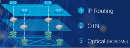Betrachtet man die Schichten unterhalb der IP-Schicht, wird es schnell sehr komplex. Die Daten werden über optische Technologie mit hoher Datenrate unter Verwendung von Wave Division Mulitplexing übertragen. Rekonfigurierbare optische Add-Drop-Multiplexer dienen als Switche und können einzelne oder mehrere Wellenlängen, die Datenkanälen tragen, hinzufügen und entfernen.