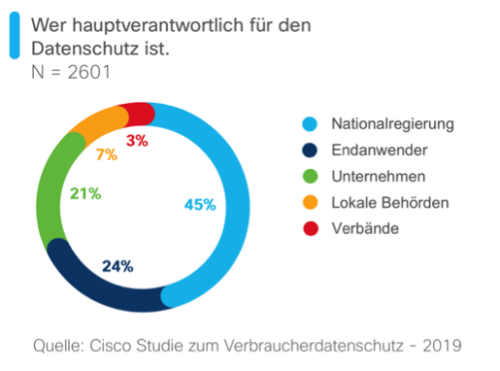 Die Verbraucher wissen die Rolle der Regierung und Behörden bei der Regulierung personenbezogener Daten zu schätzen. Bei der Frage, wer für den Datenschutz hauptverantwortlich sein sollte, sprachen sich 45% für die nationale Regierung aus. Mit 24% knapp ein Viertel sahen die einzelnen Personen selbst in der Pflicht, gefolgt von 21% für Unternehmen. Lokale Behörden waren für 7% die Hauptverantwortlichen.