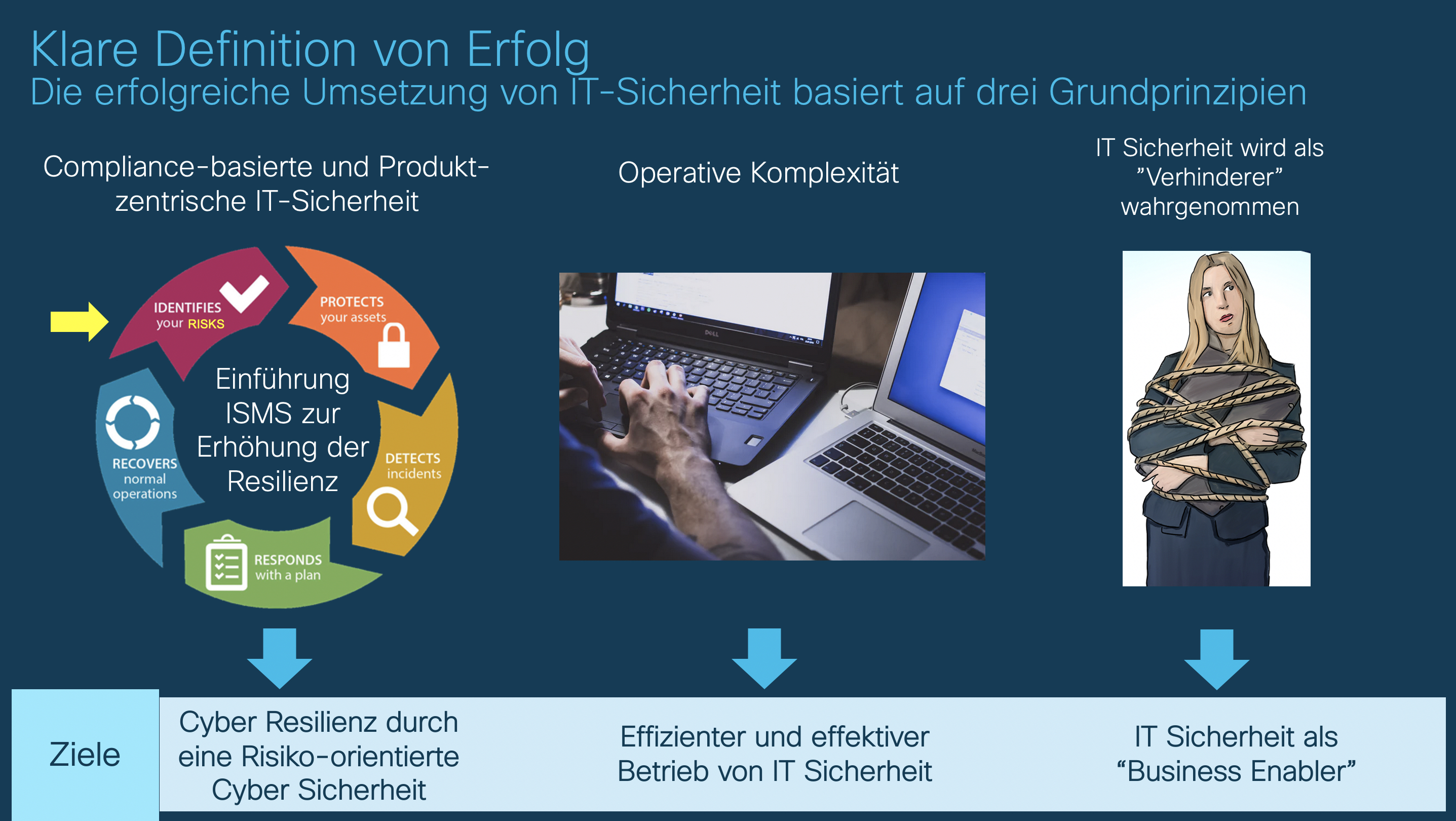 Wie definiert sich eine erfolgreiche Umsetzung von Informationssicherheit und IT-Sicherheit? Wonach sollte ich mich orientieren in meiner täglichen Arbeit? Wie bekomme ich die unterschiedlichen Interessen des Unternehmens, des Informationssicherheitsbeauftragen, des Datenschützers, des CIO oder IT-Leiter und des IT-Betriebs unter einen Hut?