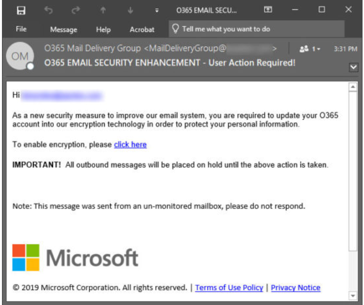 Sí. Basta examinar lo que ha sucedido con la campaña de suplantación de la identidad de Office 365 analizada en nuestro informe “Correo electrónico: pulse con precaución”. Considerada la popularidad de este servicio en la nube, los delincuentes informáticos no han dudado en centrar el objetivo en los usuarios, que han recibido un mensaje de correo electrónico de una dirección legítima como la de abajo. A menudo incluso de una dirección de correo electrónico conocida que, gracias a la técnica de conversión de interceptación, se mostraba como una respuesta a un mensaje enviado por el propio usuario y que se hallaba en la bandeja de entrada comprometida.