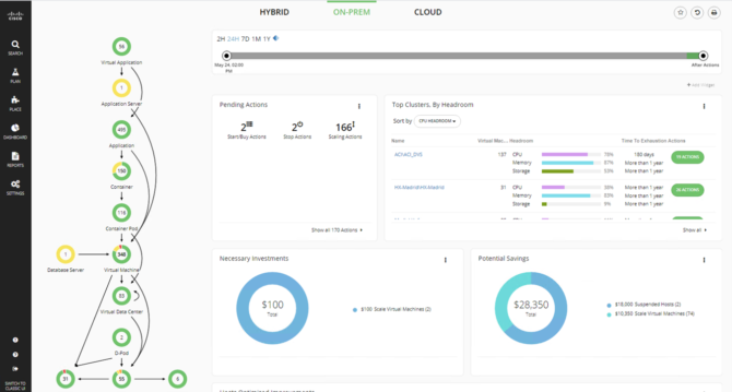 Con el objetivo de atacar el problema de raíz, Cisco ha desarrollado una herramienta llamada Cisco Workload Optimization Manager (CWOM). Un software en formato de máquina virtual, capaz de analizar todas las cargas de trabajo como máquinas virtuales, sistemas de almacenamiento, aplicaciones, equipamiento de red o incluso nubes privadas/públicas).