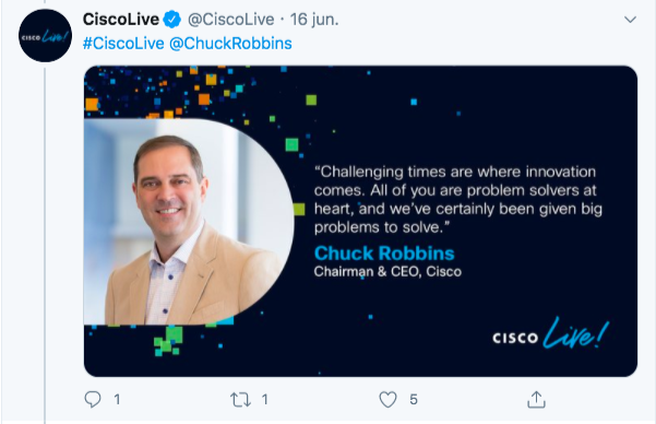 El martes pasado a las 18 hs, con un café en mano me vi la transmisión en vivo completa de lo que fue la sesión plenaria de apertura virtual de Cisco Live US 2020. Nuestro CEO, Chuck Robbins, abrió la transmisión agradeciendo a los miles de trabajadores de TI que durante los últimos meses han trabajado sin descanso para garantizar conectividad segura a los negocios esenciales, servicios sanitarios e instituciones educativas. Fue emocionante. Yo también quiero aprovechar este espacio para agradeceroslo.