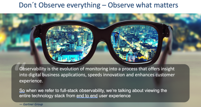 A los pilares de este nuevo modelo de operación, que nos debe guiar a la causa raíz del problema ágilmente, Gartner los denomina “Observabilidad”: