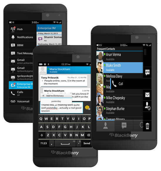 BlackBerry Enterprise IM (EIM) for Cisco permet d’accéder aux services Cisco de messagerie instantanée et de présence pour les collaborateurs de l’entreprise munis de terminaux BlackBerry 10 : Q5, Q10, Z10, Z30.