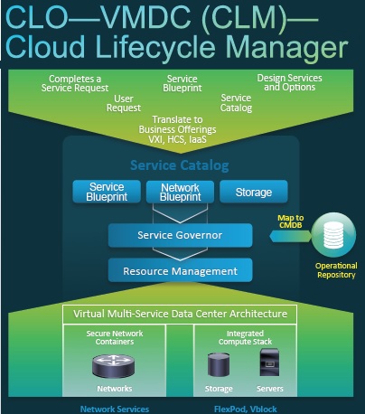 Cloud Life Cycle Manager de BMC s’appuie sur l’architecture de référence VMDC (Virtualized Multiservice Data Center ) dont l’objectif est de fournir des recommandations documentées pour la mise en œuvre de clouds sécurisés, performants et évolutifs.