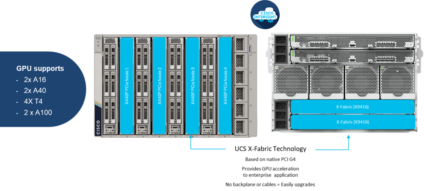- Un Node PCIe équipé de cartes d’accélération (GPU) pour l’architecture UCS X-Series