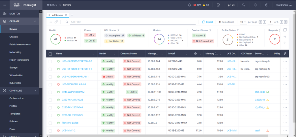 - Etat du contrat de support : Intersight permet de savoir si le serveur est bien couvert par un contrat de support et la limite de validité de ce contrat.