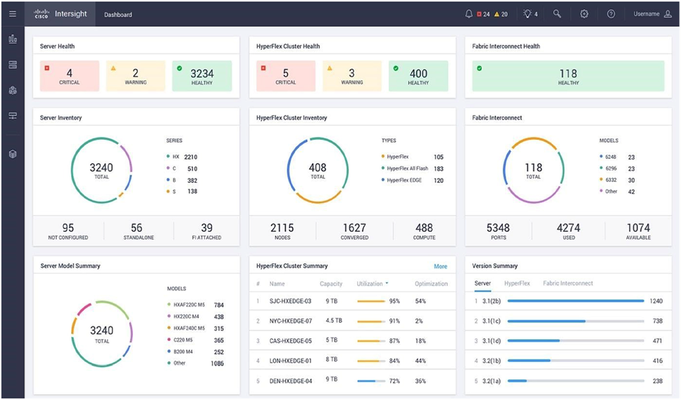 Intersight Infrastructure Service (IIS): Ce module initial d’Intersight est le service de base d’Intersight. Il permet de gérer complètement le cycle de vie de l’ensemble des infrastructures de computing Cisco UCS et HyperFlex, indépendemment de leur localisation. Il permet également de superviser un écosystème de solutions partenaires Cisco (Stockage NetApp, Stockage PureStorage, etc). La dernière innovation de ce module est le service “Intersight Managed Mode” qui offre une manière unifiée de configurer et administrer les serveurs UCS, qu’ils soient indépendants (serveurs racks) ou attachés à des UCS Fabric Interconnect.