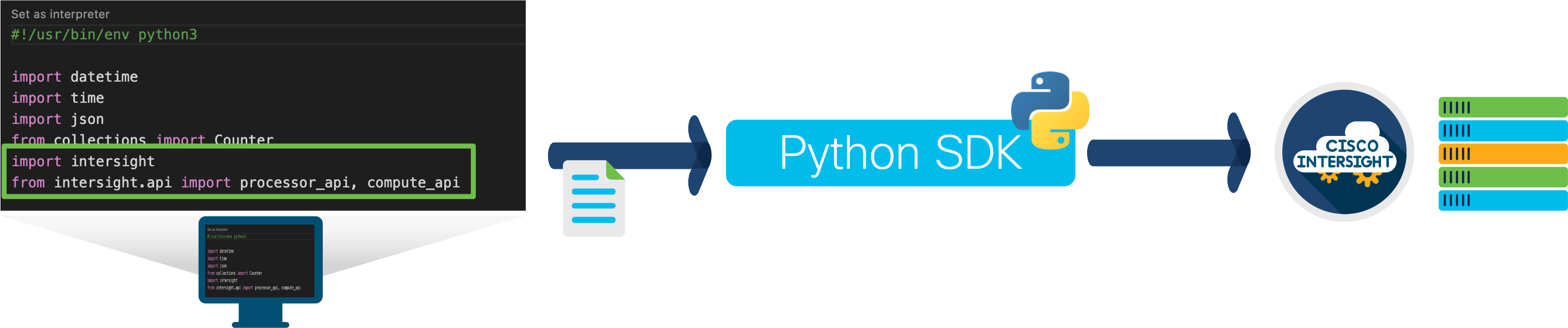 Le SDK Python pour Intersight est un outil permettant de simplifier les interactions avec l’API d’Intersight via le langage Python. Il permet de lire, créer, modifier ou supprimer les différents objets (Managed Object) d’Intersight. En proposant un ensemble de modules Python, classes et fonctions, le SDK est en quelque sorte une « interface Python » au modèle objet de Intersight.
