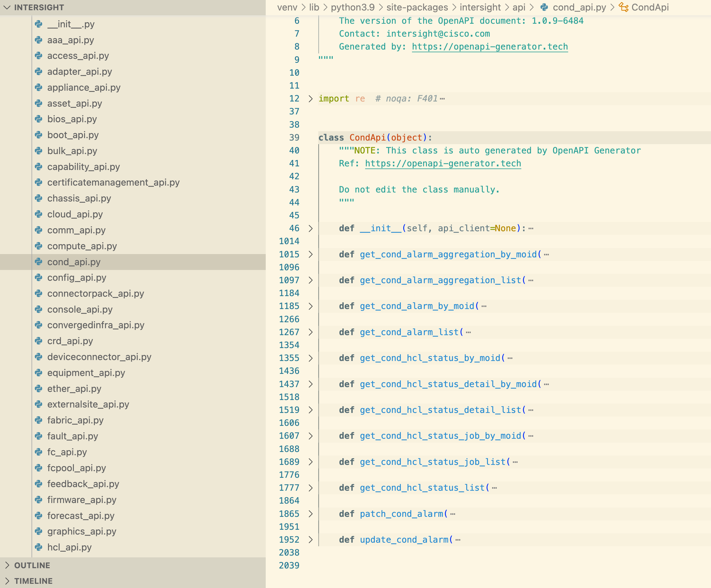 • Enfin, en inspectant directement le SDK Intersight dans le dossier api, on obtient les classes et les différentes méthodes liées: