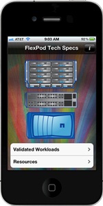 De la même manière qu’il existe une application iphone pour les serveurs UCS, vous avez également accès sur votre téléphone ou votre tablette à une application qui reprend les caractéristiques des Flexpod ainsi que les principaux liens vous fournissant une grande quantité d’informations.