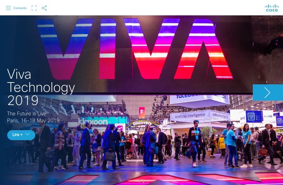 Co-organisé par Publicis Groupe et le Groupe Les Echos, VivaTech est le rendez-vous mondial des startups et de l’innovation. Cet  événement international, dédié à la croissance des startups, à la transformation digitale et à l’innovation, s’est tenu du 16 au 18 mai 2019 à la Porte de Versailles à Paris. Cisco est partenaire Gold de ce salon depuis ses débuts en 2016.