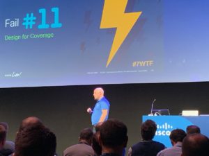 Dans l’après-midi je suis allé voir une autre session sur le Wireless rendu très célèbre: les “7 ways to Fail as a Wireless Expert”. Steven Heinsius fait le show sur scène et explique les erreurs à ne pas commettre. Il rappelle notamment les précédentes erreurs déjà présentées lors des derniers CiscoLive et rajoute 6 nouvelles erreurs associées au Wi-Fi6. Hilarité générale, des messages bien délivrés, pas de doute Steven tient sa salle! Je vous encourage à faire un tour sur bad-fi.com pour voir des exemples assez drôles d’erreurs tragi-comiques!