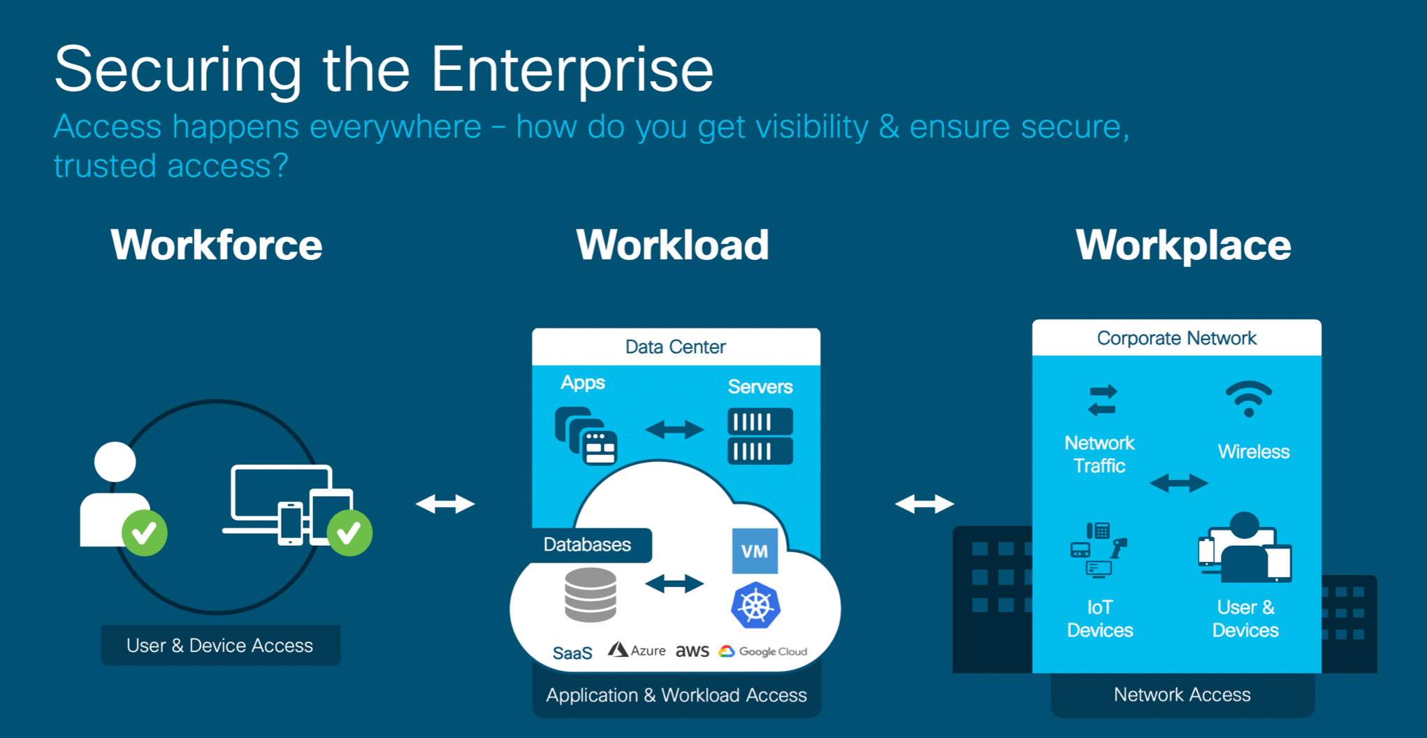 Cisco a investi dans l’infrastructure Zéro Trust la plus étendue de l’industrie pour sécuriser l’ensemble du personnel, du lieu de travail et des workloads.