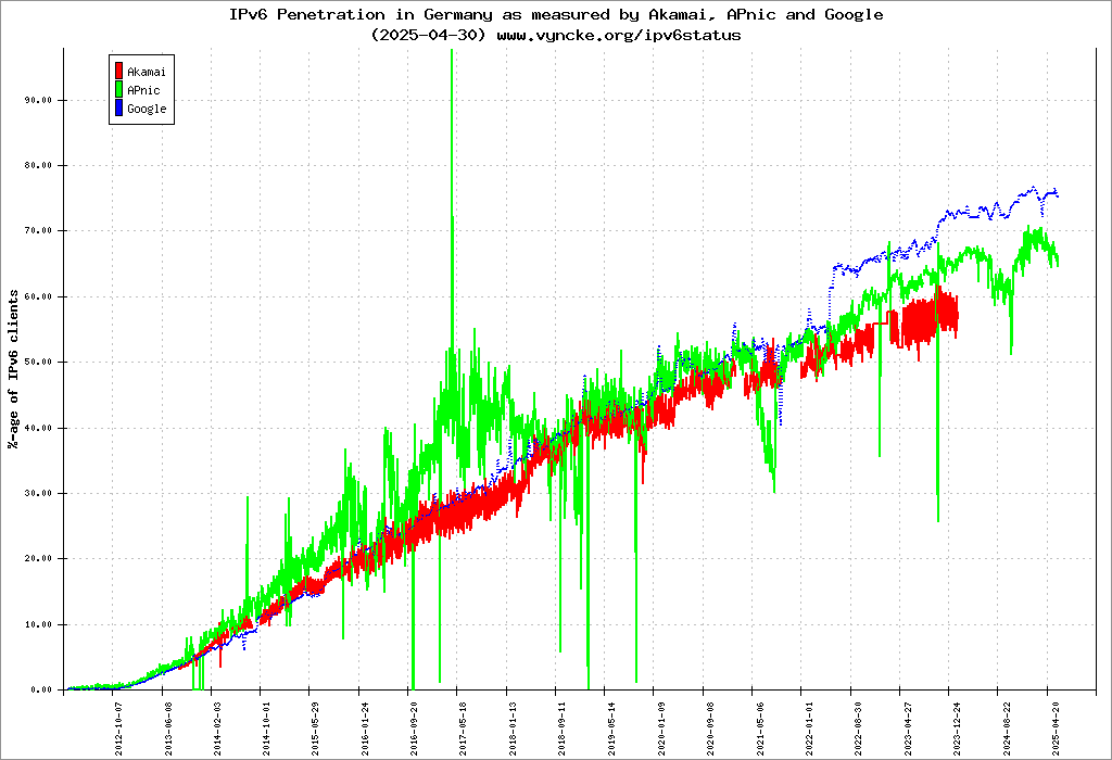 IPv6 ha fatto tantissima strada! Non è successo granché fino al 2011, quando sono terminati gli indirizzi IPv4. È quello il momento in cui è iniziata la valanga: abbiamo avuto il World IPv6 Day nel 2011 ed è andato così bene nel dimostrare che IPv6 funziona su scala globale, che nel 2012 c’è stato il World IPv6 Launch.