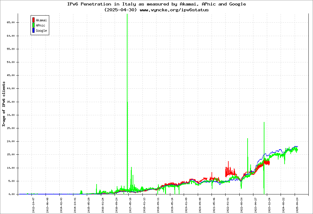 Sono tutti dati di fatto, concreti. Per dare un’idea, Google conta quante ricerche provengono da browser abilitati ad IPv6  (v6 inteso sia come dispositivi che come collegamento internet). Guarda che trend, siamo oltre il 2% a livello globale.