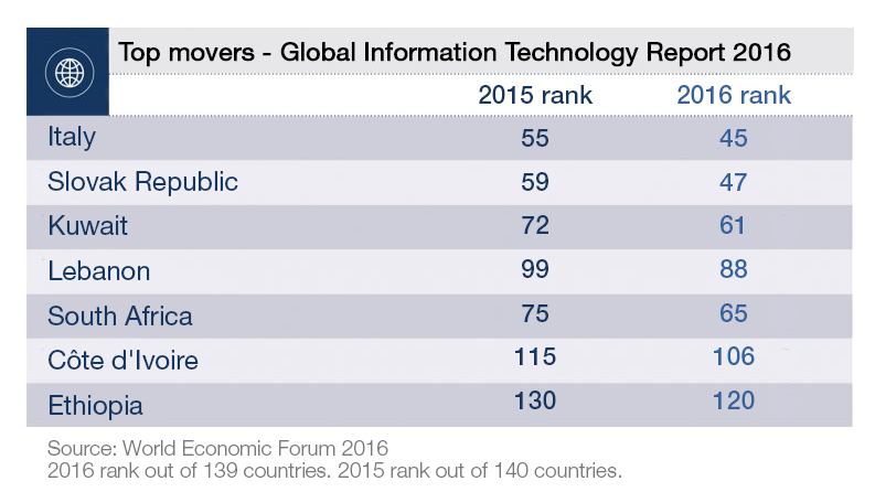 Global Information Technology Report 2016: Italia fra i Top Mover