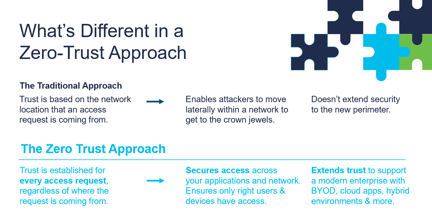 Per gli scenari attuali così complessi e dinamici, i modelli convenzionali per la sicurezza aziendale non sono più sufficienti. La maggior parte di questi modelli sono basati sul concetto di sicurezza perimetrale che applica politiche ed è gestita e amministrata all’interno del perimetro aziendale. In poche parole se un utente dispone delle corrette credenziali può accedere a qualsiasi sito, applicazione o dispositivo richiesto.